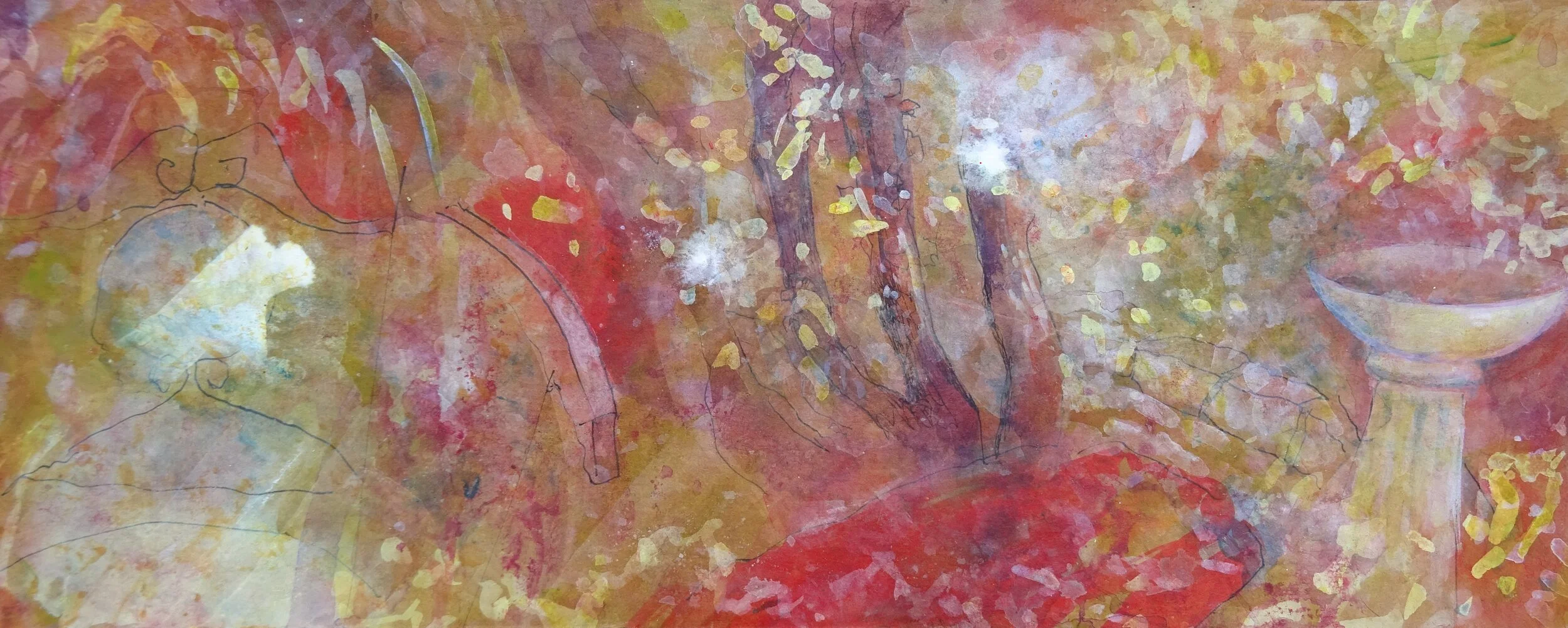 'October Garden' 45 x 18cm, acrylic and ink on card £300